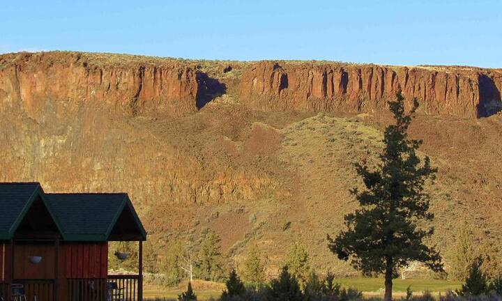 The private cabin is equipped with a private bathroom, kitchenette, wifi, cable tv, private deck, and just enough leg room to reset, relax and unwind after a day of adventure in beautiful central oregon!